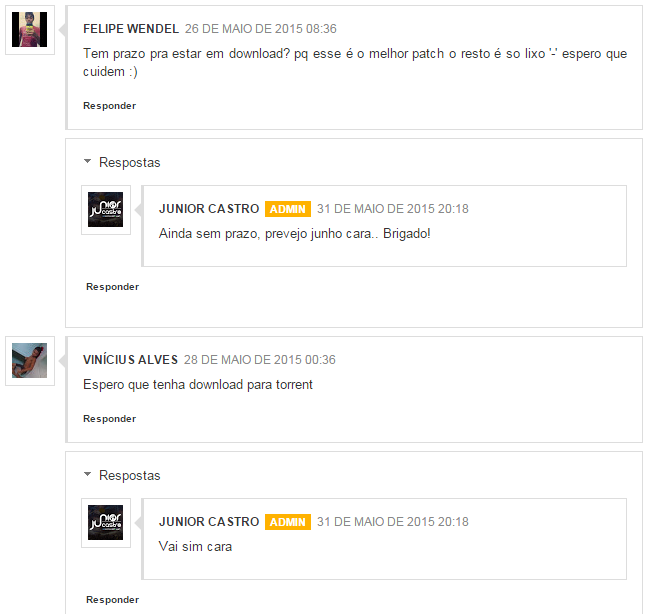 Mas sempre que posso estarei respondendo os meus posts, sim, porque os dos outros autores já também são muitos por hora kkkk