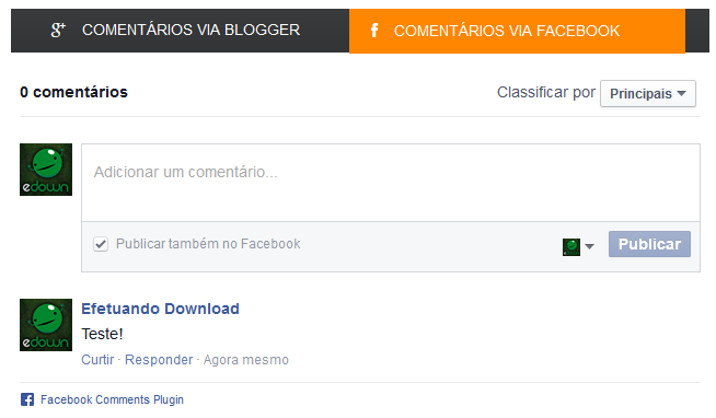 Finalmente consegui implementar a função de comentar nos posts do Efetuando Download com a sua conta do Facebook.
